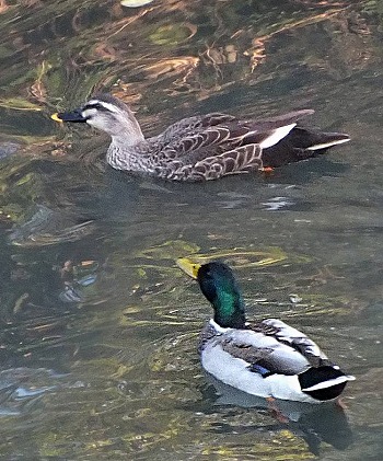 歳時記 2026.01.29冬季はやはり鳥がメインとなります。写真の鳥は上がカルガモ、下がマガモです。 最近この2種の混血種である「マルガモ」が存在することを知りました(この2羽がペアかどうかは不明ですが)。