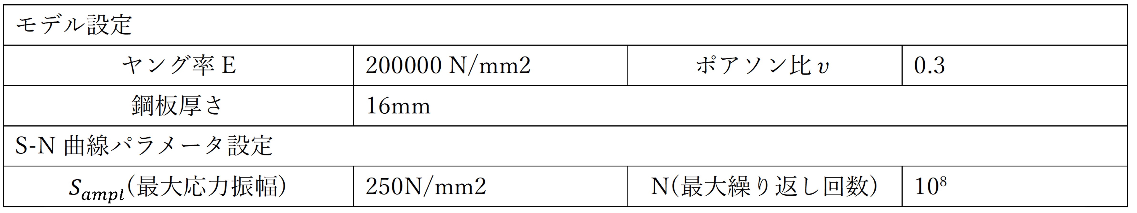 DIANA による疲労破壊解析(Fatigue Failure Analysis)を実施するためには,各部材ごとにS-N曲線の定義が不可欠である.本稿では,単純な鋼板を対象として疲労破壊解析を行い,その解析結果を手計算によって求めた疲労寿命と比較することで,DIANAによる疲労破壊解析の有効性を検証する.なお,材料のS-N曲線パラメータおよびモデル図をそれぞれ表-1および図-6に示す.
